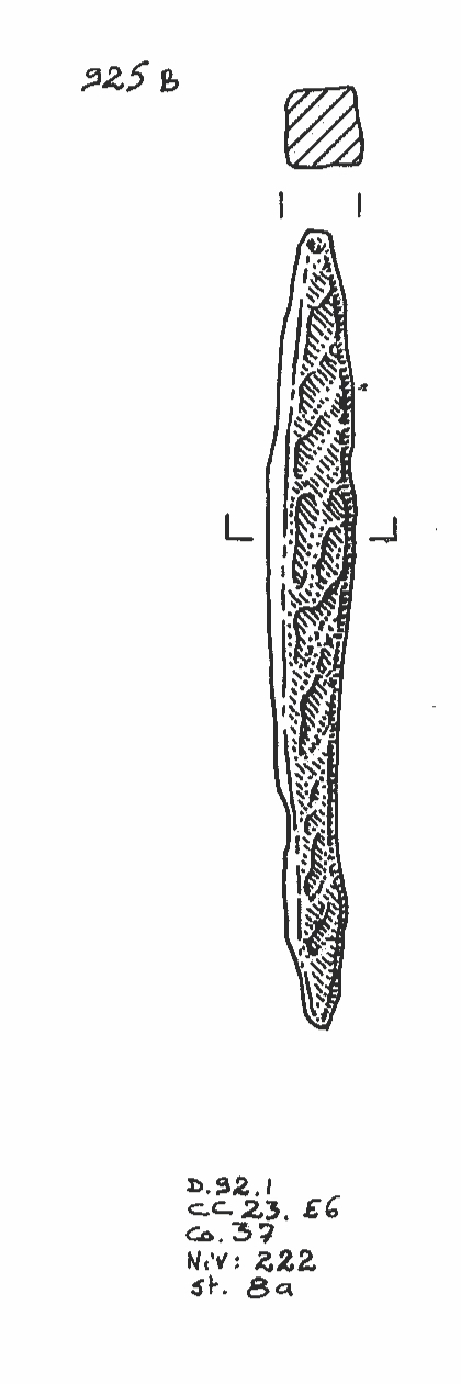 alêne constituée d'une tige de section carrée dont la section est plus importante dans le milieu