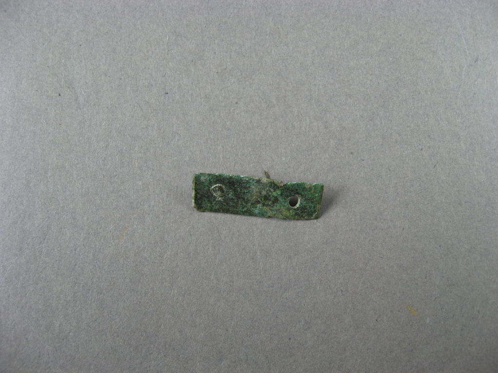 Le banquelet est constituée d'une étroite tôle rectangulaire plate à chaque extrémité de laquelle est visible un trou destiné à recevoir un rivet de fixation, dont un subsiste encore.